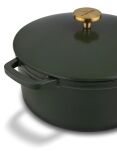 Gęsiarka żeliwna emaliowana 5 l okrągła ciemnozielona CECHY I ZALETY · Ciężki, solidny korpus odlany z żeliwa (pokrywka również!) · Nietoksyczna powłoka emaliowana do bezpiecznego gotowania i smażenia · Konstrukcja i dno przystosowane do wielogodzinnego podgrzewania · Możliwość korzystania z gęsiarki na gazie, indukcji oraz płytach ceramicznych i elektrycznych · Opcja duszenia potraw z pomocą dołączonej pokrywki dedykowanej z żeliwa · Dwa solidne uchwyty odlewane dla wygody i maksymalnej stabilności podczas przenoszenia · Produkt nadaje się do użytku w domowym piekarników w temperaturze do 250 st. C · Eleganckie wykończenie, klasyczny projekt i bezpieczeństwo użytkowania dla całej rodziny Emaliowana, żeliwna gęsiarka czarna, ciężka brytfanna do piekarnika z pokrywką tradycyjną emaliowaną w czystej i ekskluzywnej postaci! Oto gęsiarka żeliwna – SOLIDNA, wielozadaniowa i bezpieczna dla potraw. Można w niej gotować na kuchence i to dosłownie każdej, nawet na płycie indukcyjnej. Pełen potencjał osiąga natomiast w PIEKARNIKU. Wytrzyma nawet temperaturę 250 st. Celsjusza. Stworzysz w niej kompozycje smaków, które wymagają czasu i cierpliwości. Użyte składniki będą chronione przed przywieraniem, gdyż wnętrze okrągłej gęsiarki 5 l pokryto EMALIĄ. Naczynie z taką powłoką, poleca się dla alergików, osób starszych oraz do tworzenia potraw dla dzieci. To dlatego, że jest w 100% nietoksyczna! Zrobisz w niej również domowy chleb! Z żeliwną gęsiarką masz wiele do zyskania – najwyższą odporność na uszkodzenia mechaniczne, a nawet dłuższe utrzymanie ciepła posiłku. Fakt, trochę waży, ale ma też solidne uchwyty, które pozwolą ci BEZPIECZNIE wyjąć ją z piekarnika lub przenieść na stół. W komplecie jest pokrywka, która poprzez precyzyjne i równomierne skraplanie pary wodnej dba o optymalne nawilżenie jedzenia. Pokrywkę garnka również odlano z żeliwa. Z takim produktem bez wysiłku uzyskasz chrupiącą skórkę kaczki lub równomiernie zarumienisz pieczonego kurczaka. Stworzysz z nim NAJLEPSZE swojskie zapiekanki i dania jednogarnkowe! Wymiary modelu to 33 x 19 x 26 cm. Prezentowana brytfanna żeliwna może być rozgrzewana godzinami (np. na wolnym ogniu)!