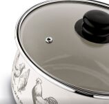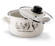 Komplet kremowych zdobionych garnków emaliowanych z pokrywkami szklanymi 16 cm, 18 cm, 20 cm,22 cm