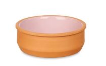 Pojemność 200 ml i średnica 12 cm, kolor gliniany na zewnątrz, środek szary.